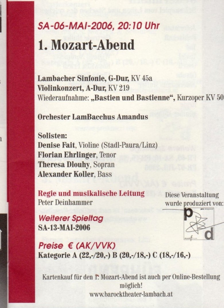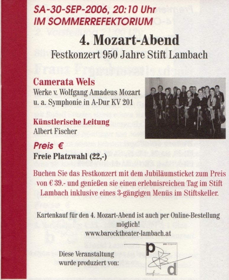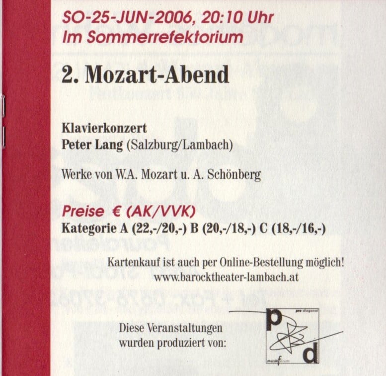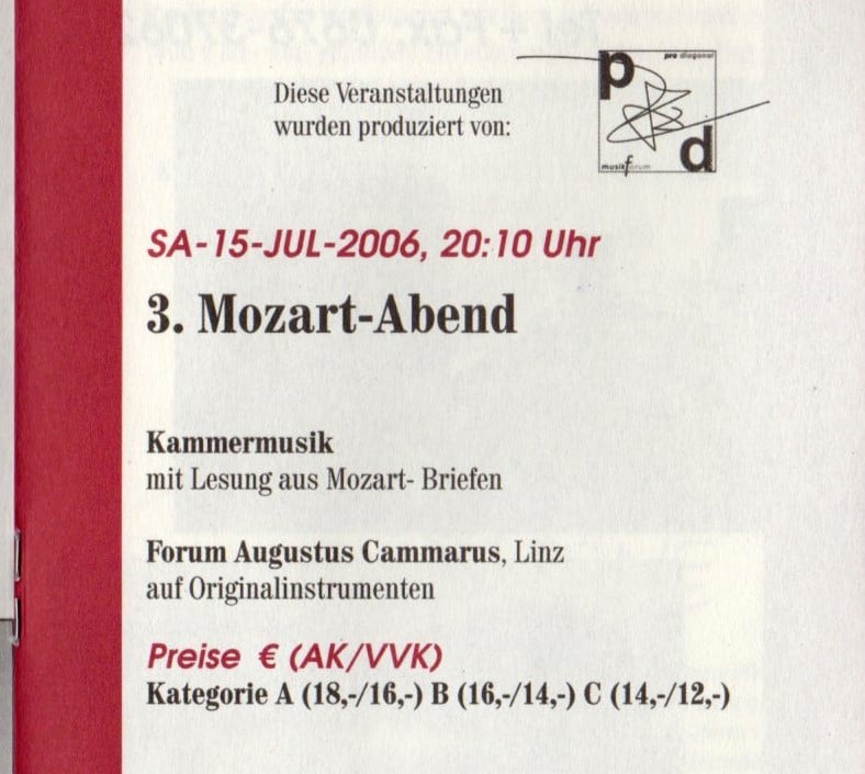 Die erste Konzertreihe von ProDiagonal, zum Mozart-Jahr 2006: